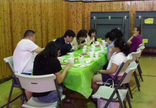 29일 단비 예배 모습과 구역별 식사